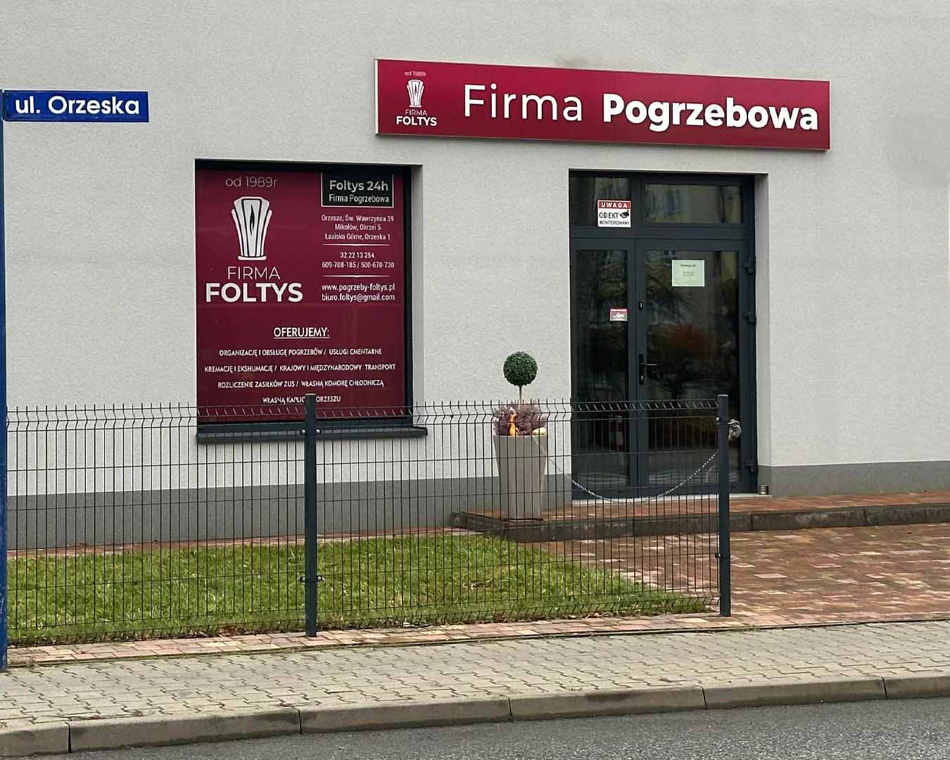 Tutaj w Orzeszu znajduje się nasza główna siedziba. To właśnie stąd od ponad 30 lat pomagamy rodzinom z całego regionu w organizacji pogrzebów z troską, spokojem i pełnym poszanowaniem tradycji.